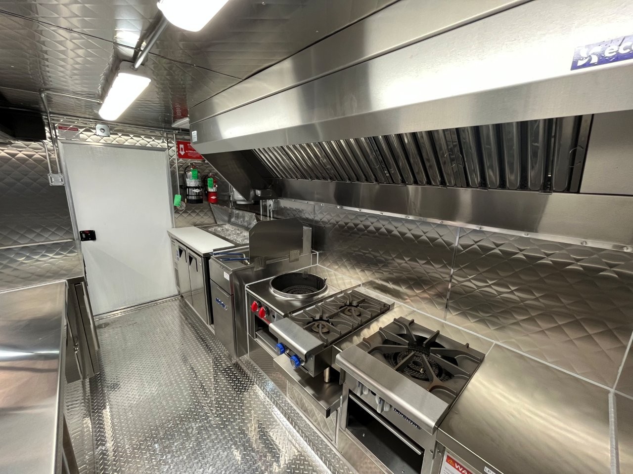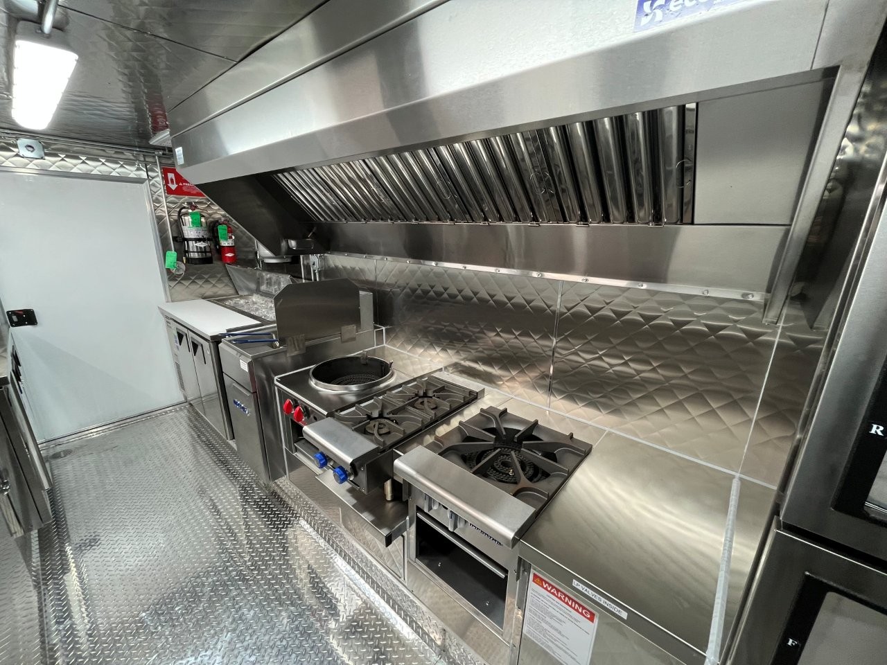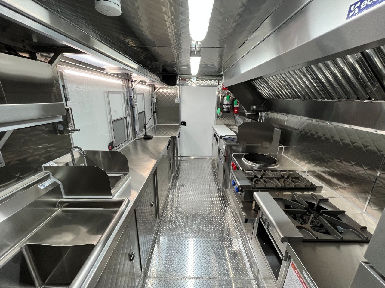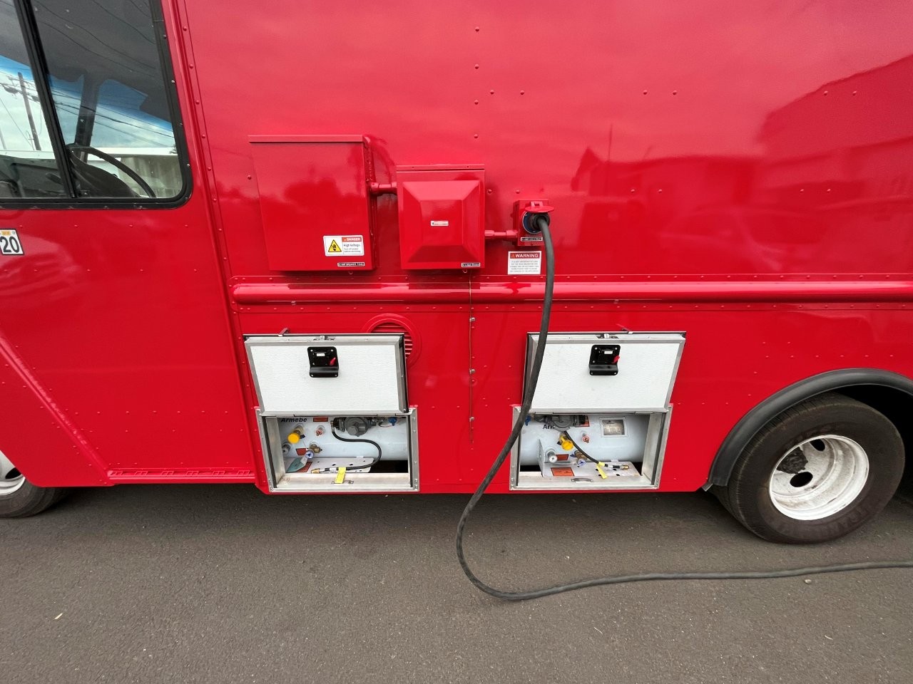 7kW propane Cummins Onan generator, stock pot, wok range, camera wiring, sound system, refrigerator/freezer combo unit