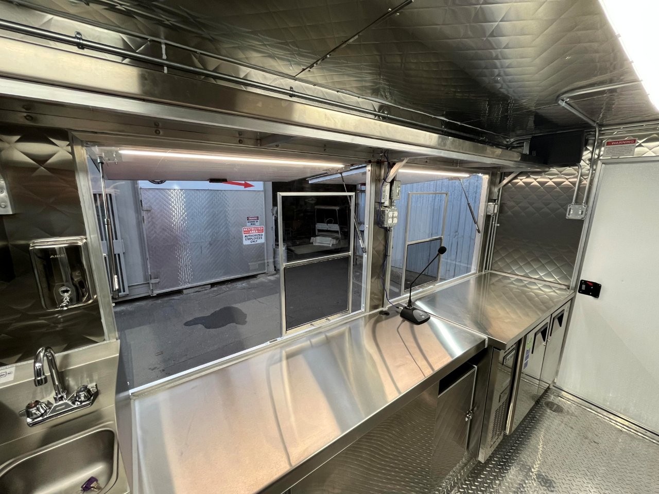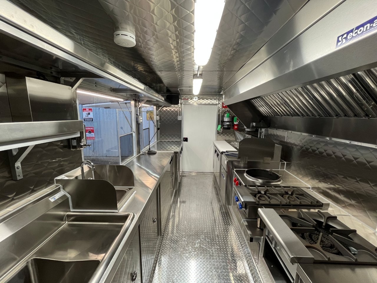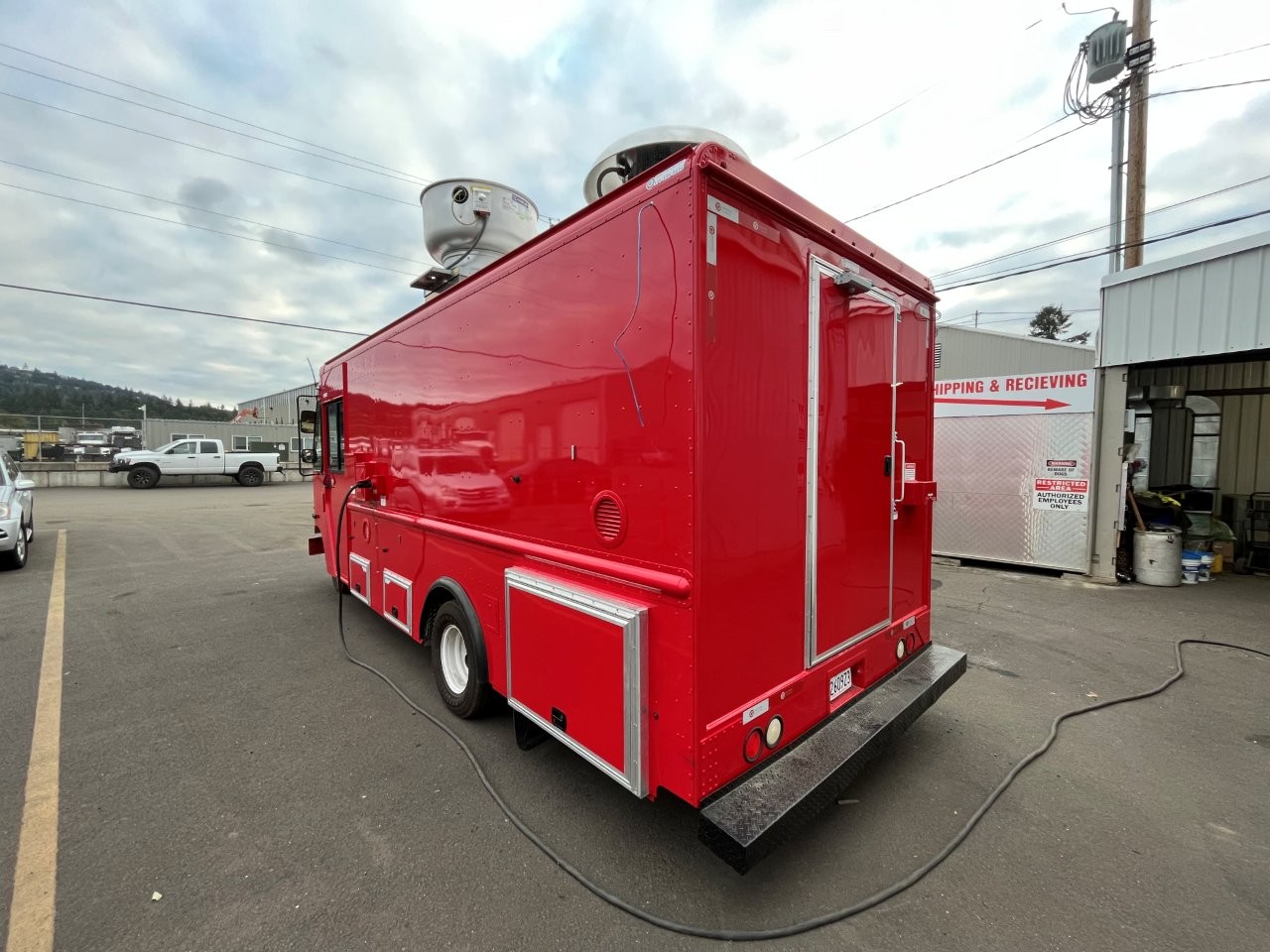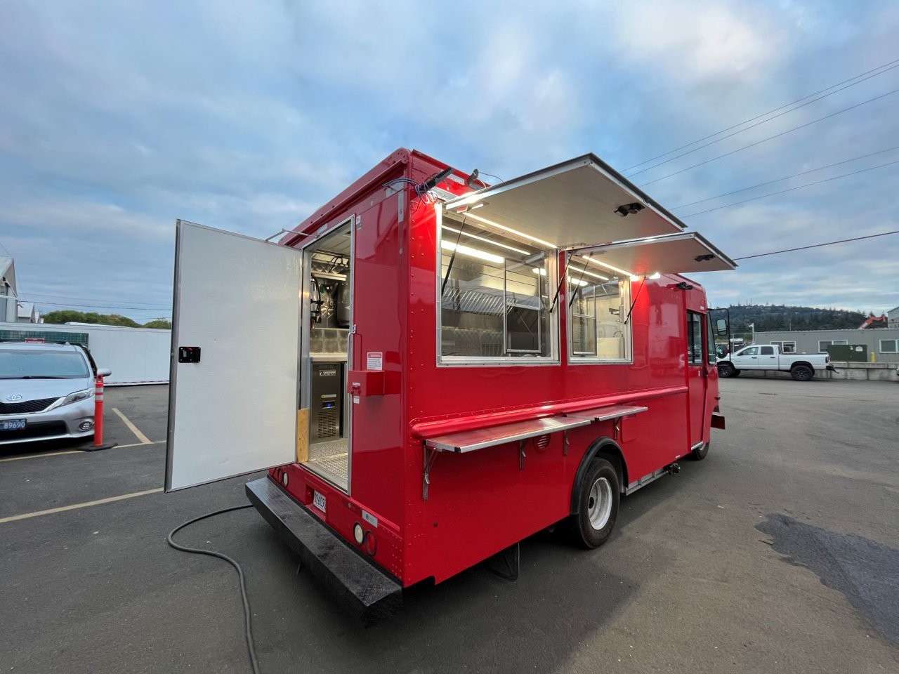 7kW propane Cummins Onan generator, stock pot, wok range, camera wiring, sound system, refrigerator/freezer combo unit