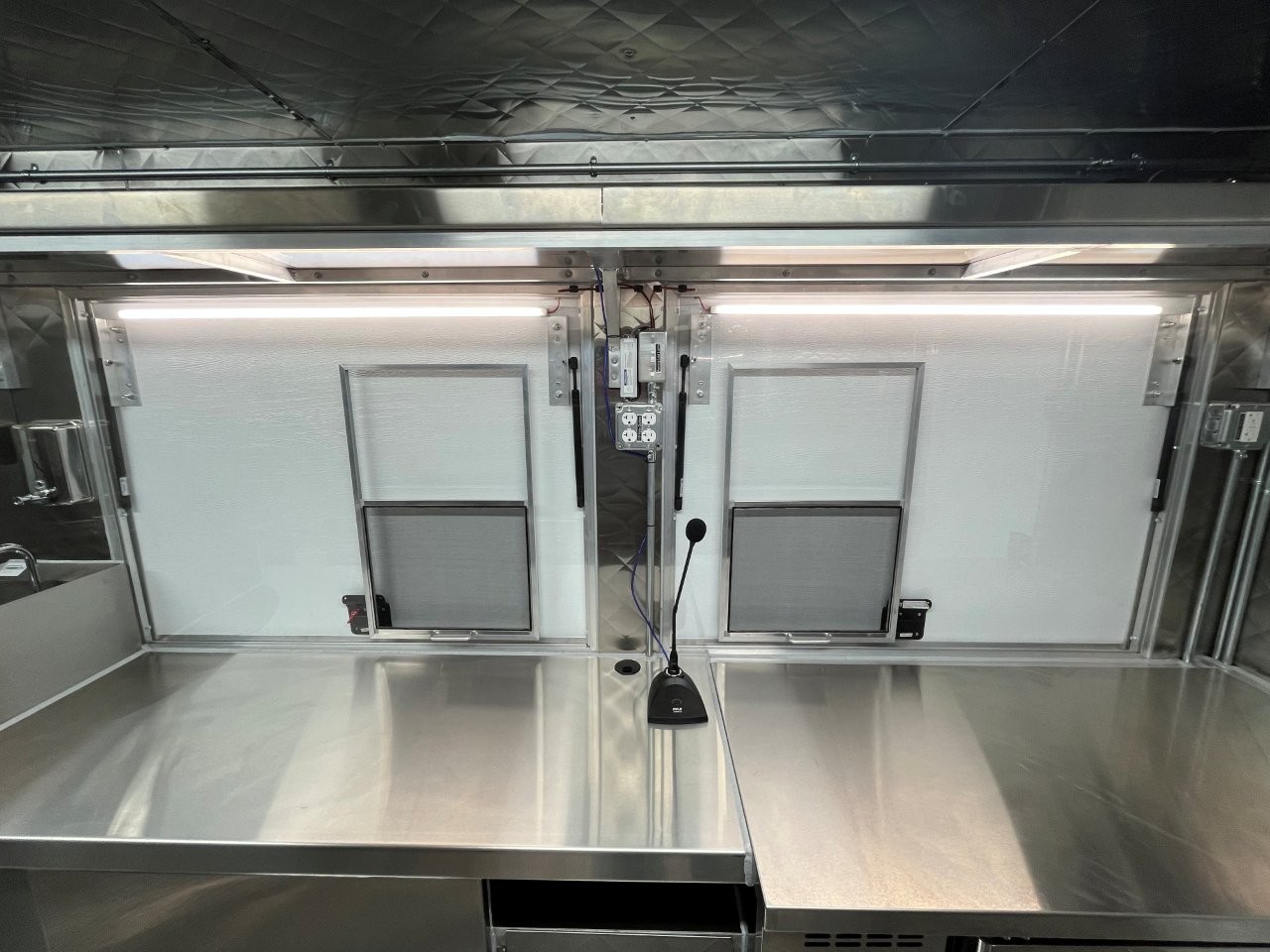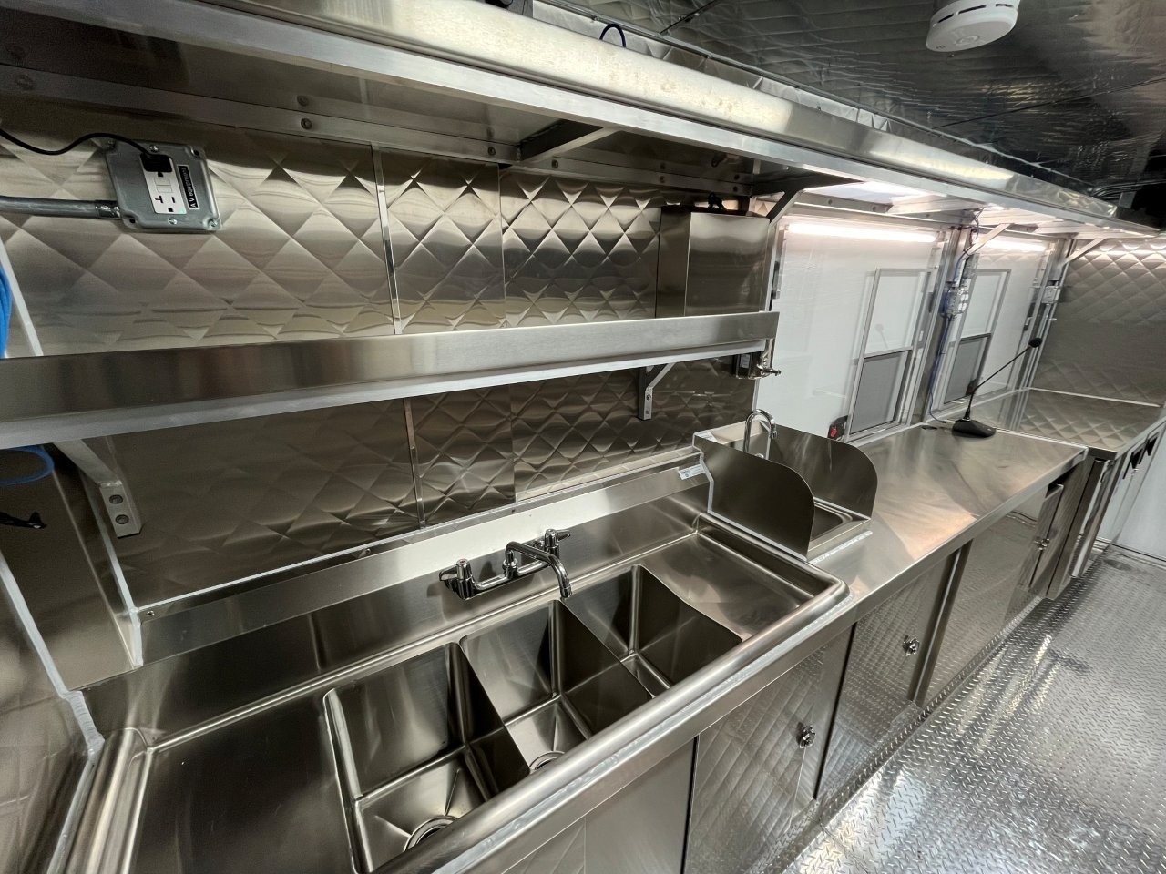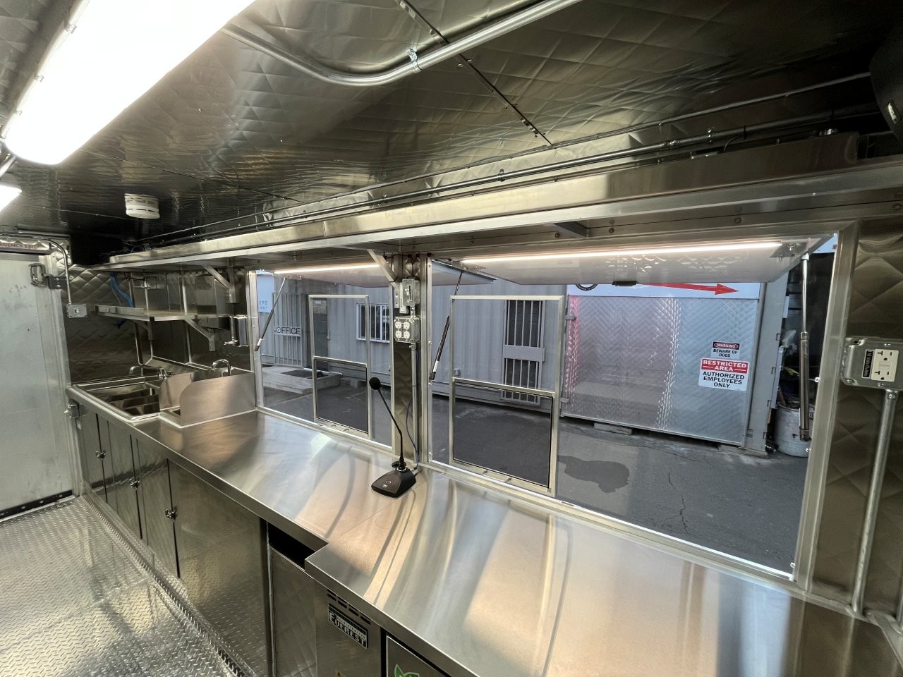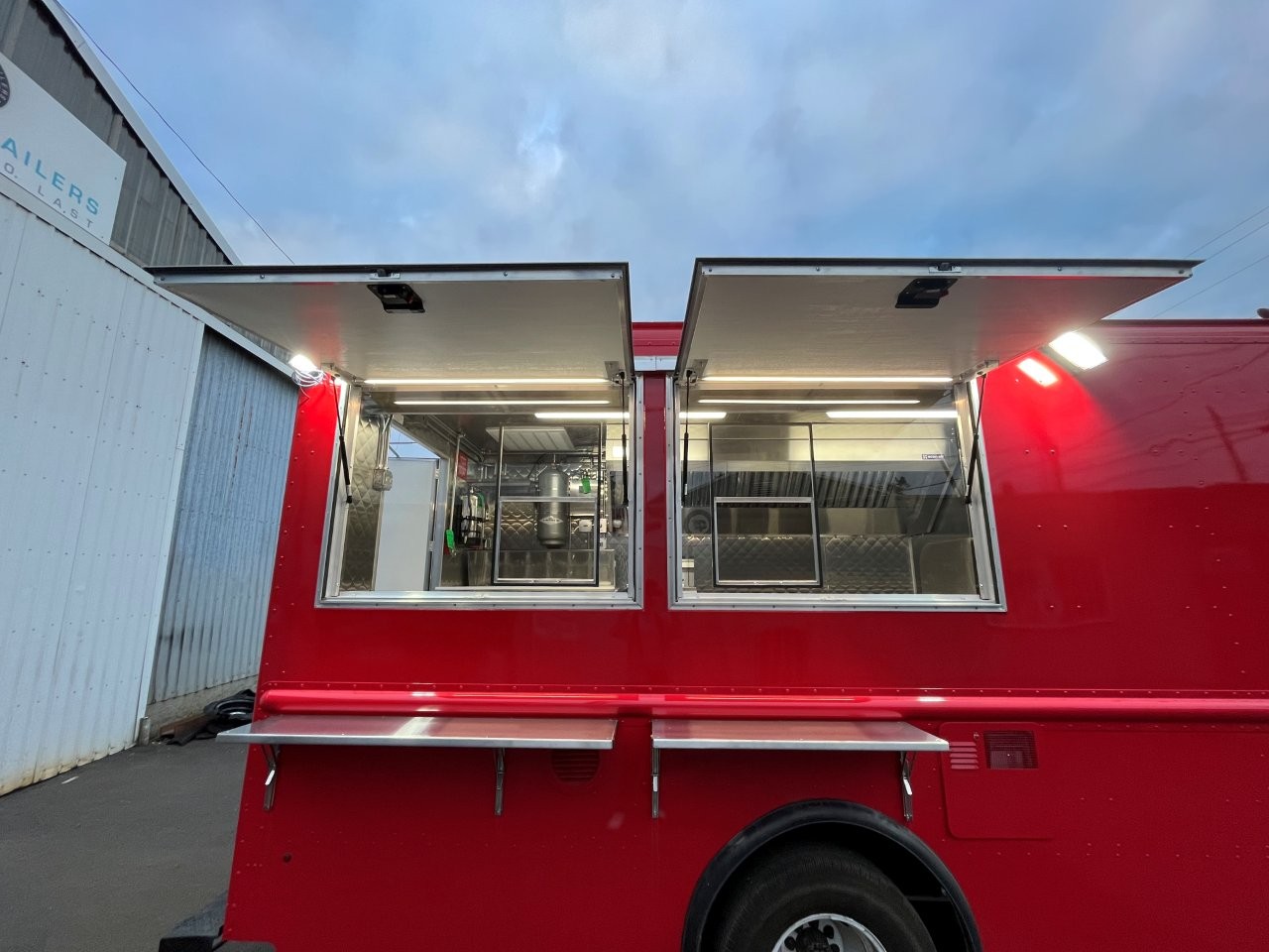 7kW propane Cummins Onan generator, stock pot, wok range, camera wiring, sound system, refrigerator/freezer combo unit