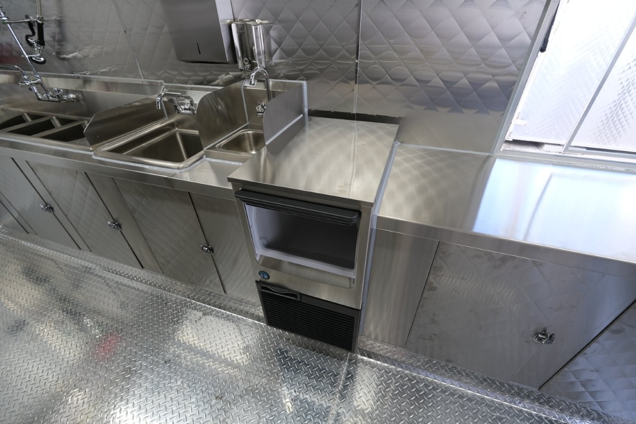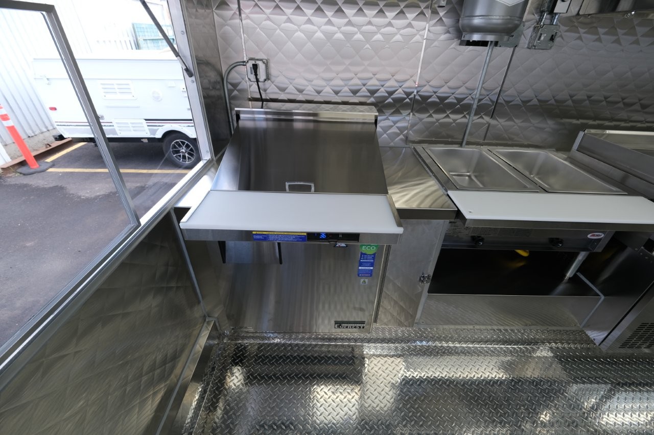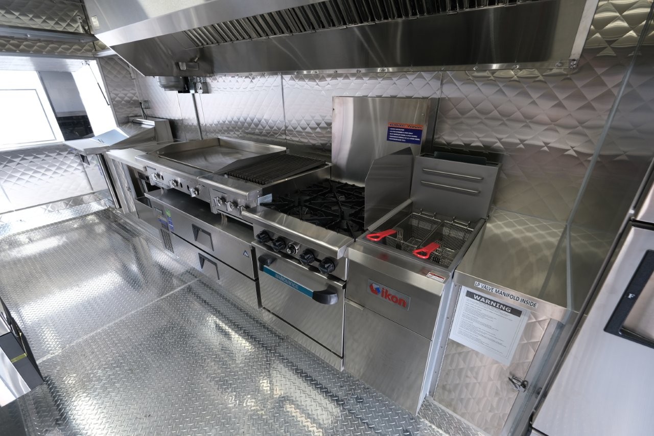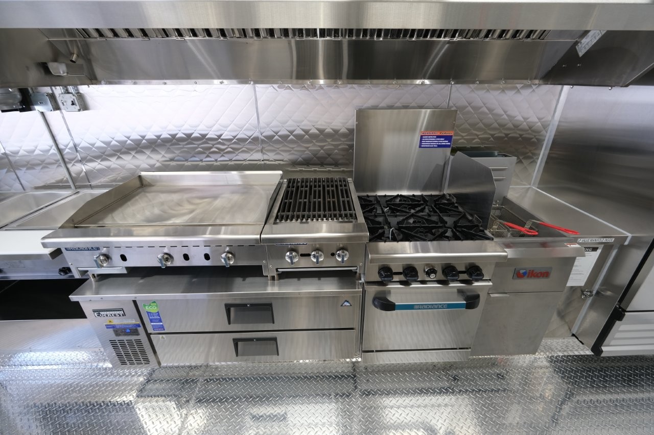 Custom wrap, ice machine, 36″ griddle, 18″ charbroiler, 54″ chef base, 28″ mega-top sandwich prep table