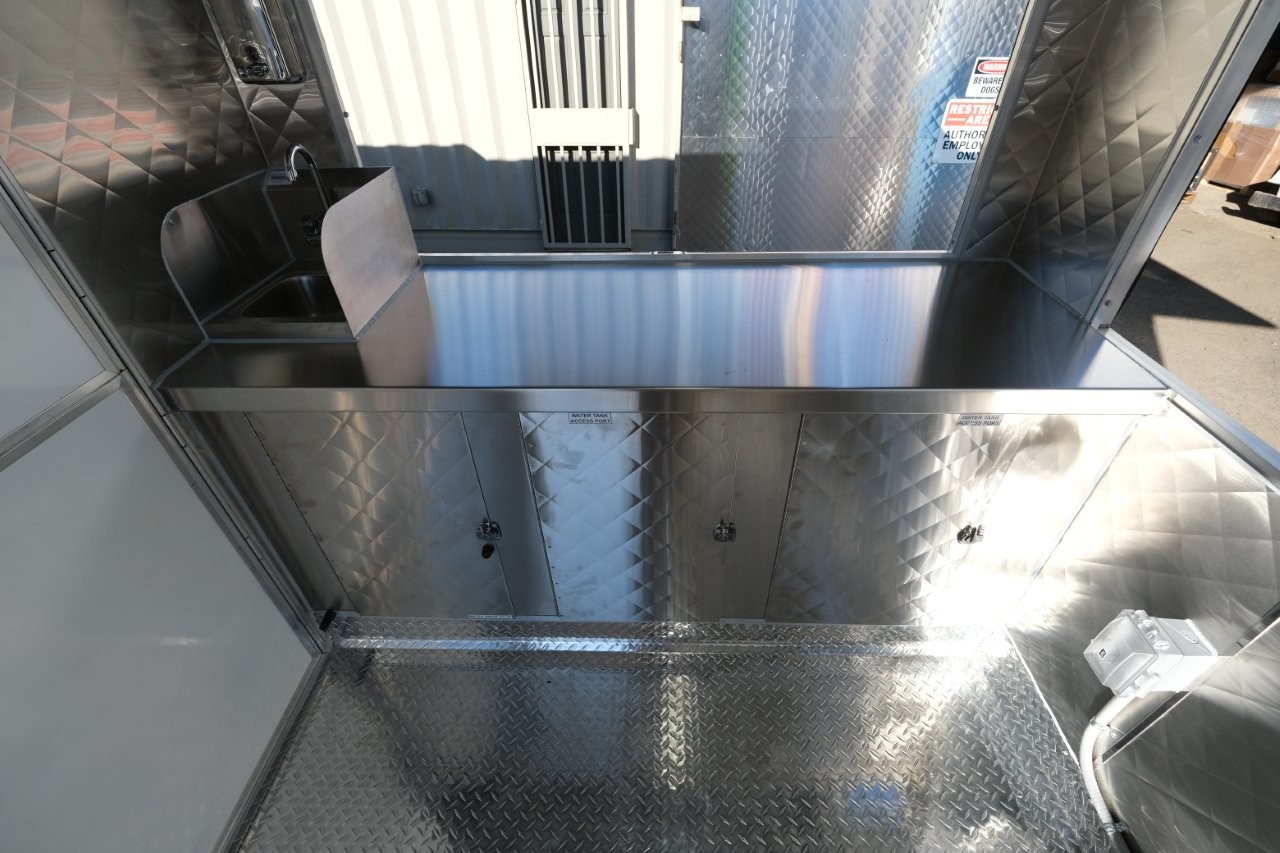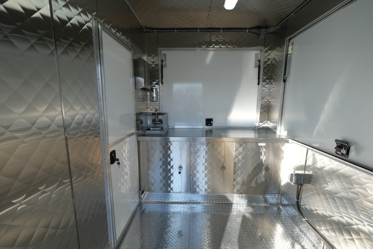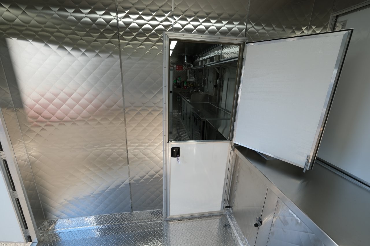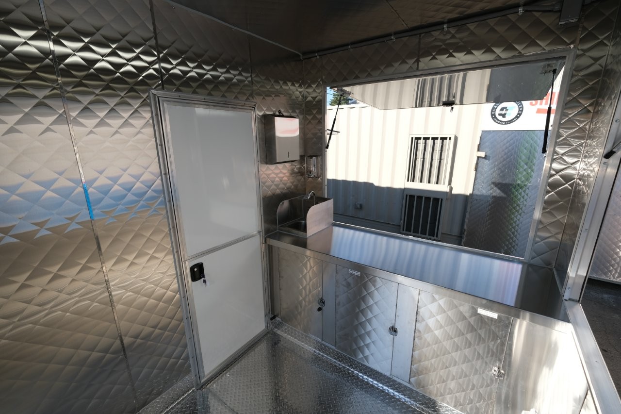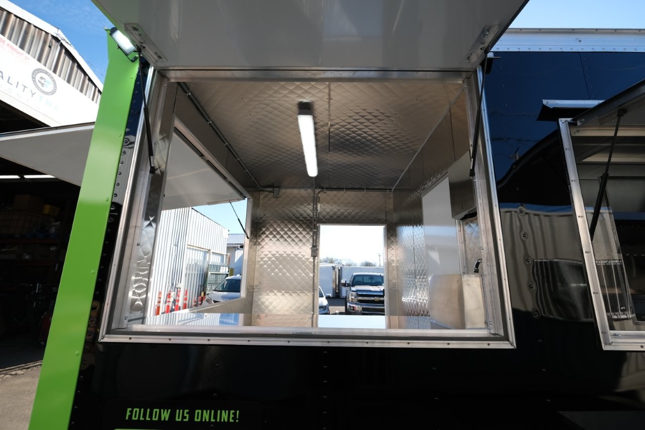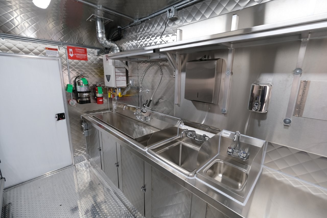 Custom wrap, digital TV menu, 6′ porch area, 48″ mega-top sandwich prep table, 48″ griddle on a 48″ chef base
