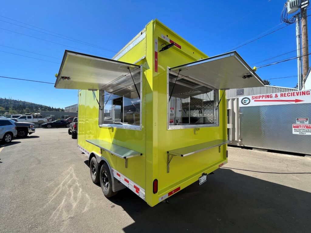 Two sandwich prep tables, 4′ hood with fire suppression system, undercounter freezer, security locks on door and windows, screen door