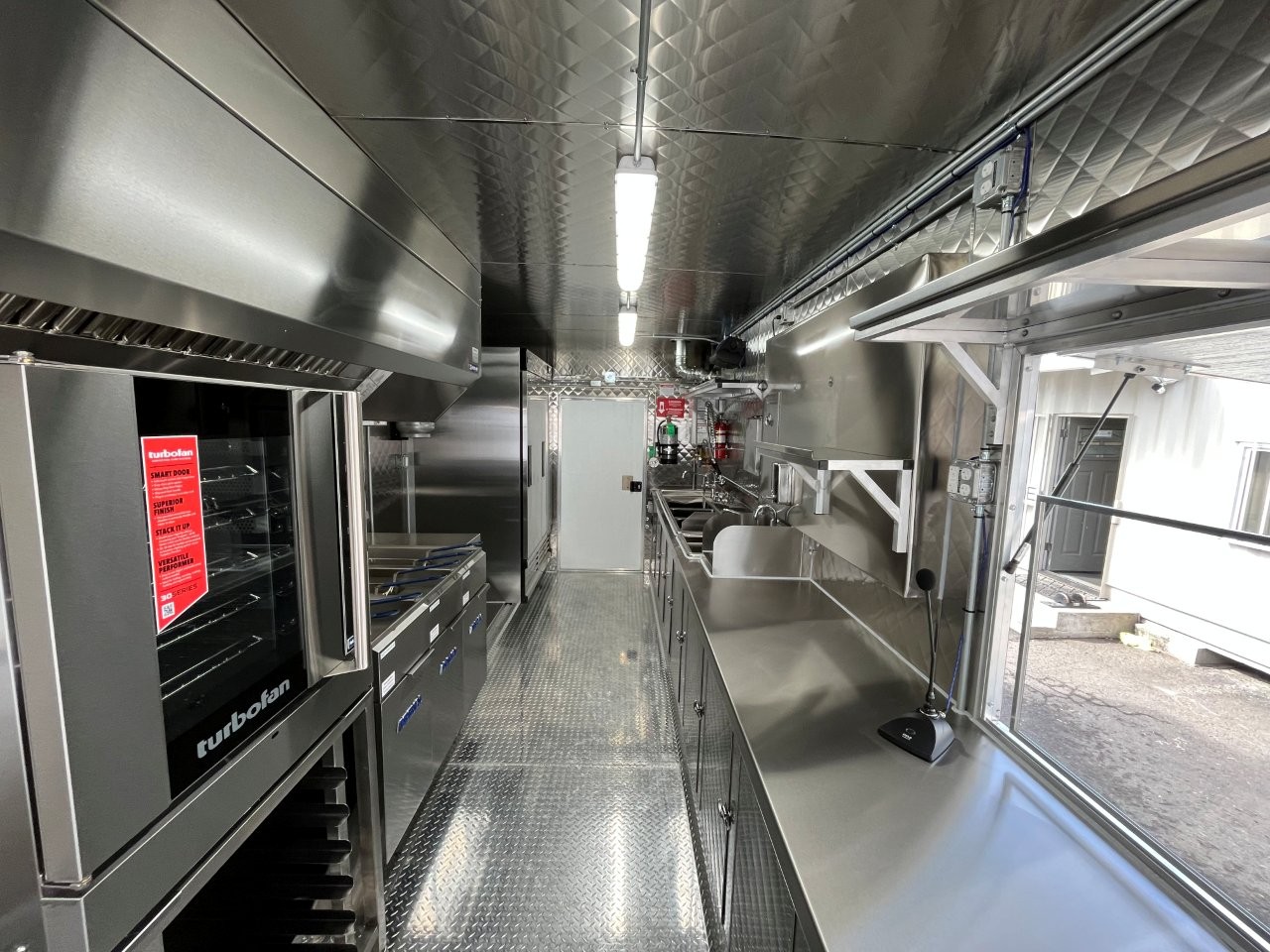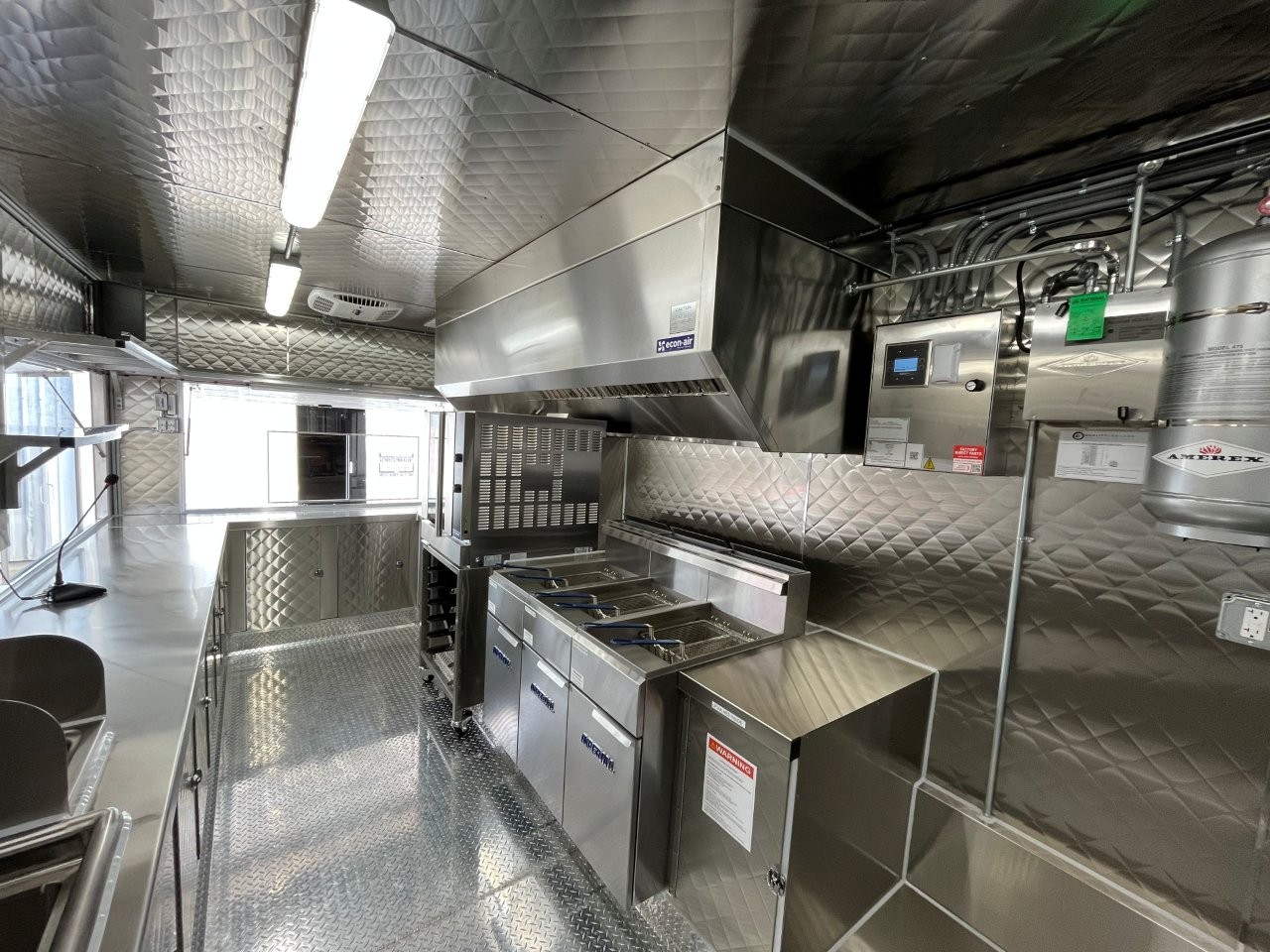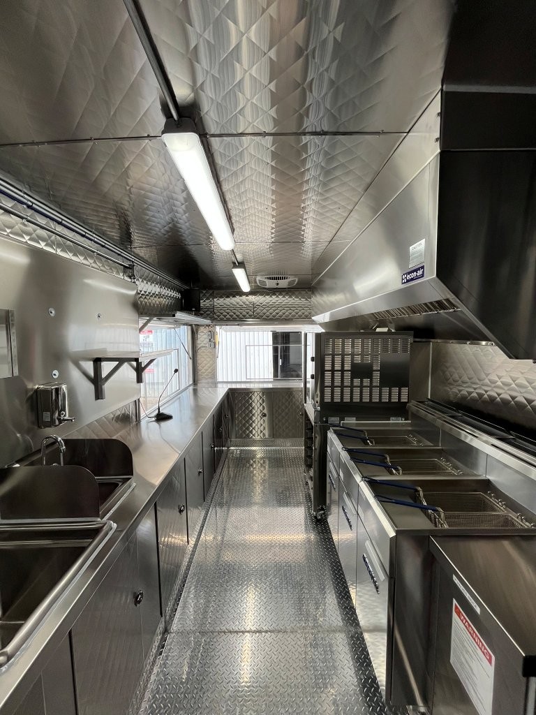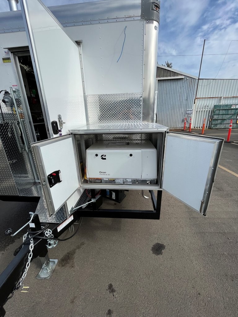 6.5kW propane Cummins Onan generator, custom wrap, digital TV menu, three deep fryers, conection oven, sound system