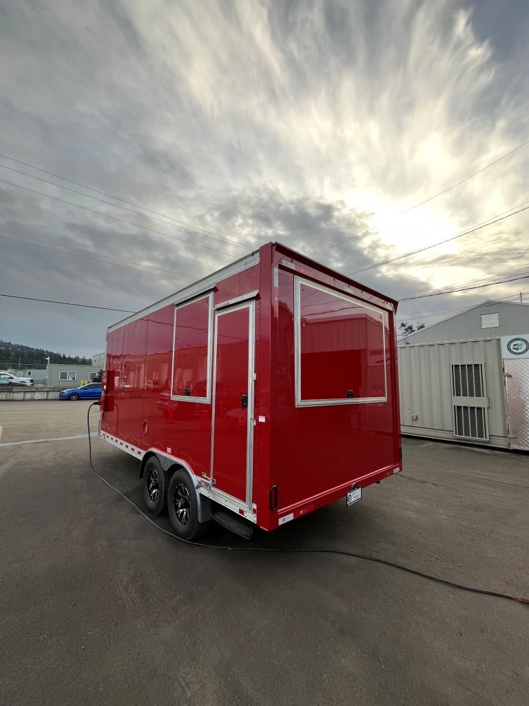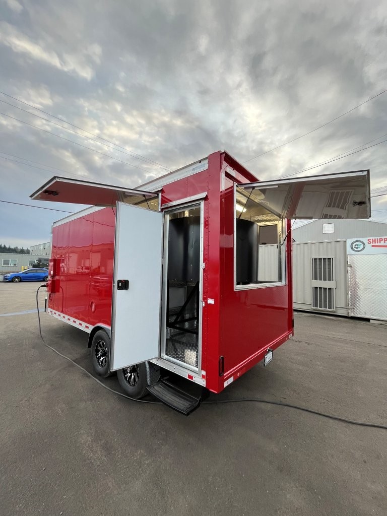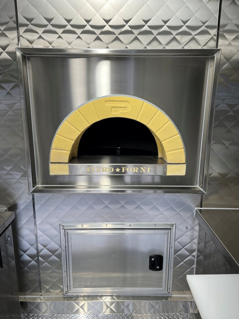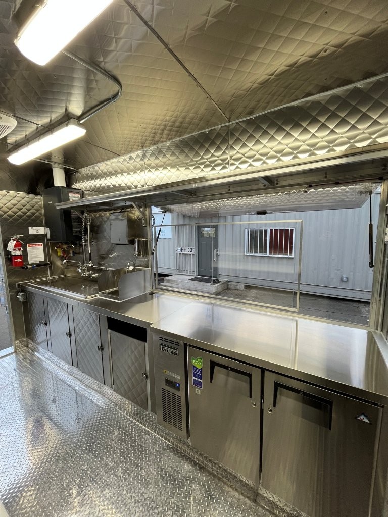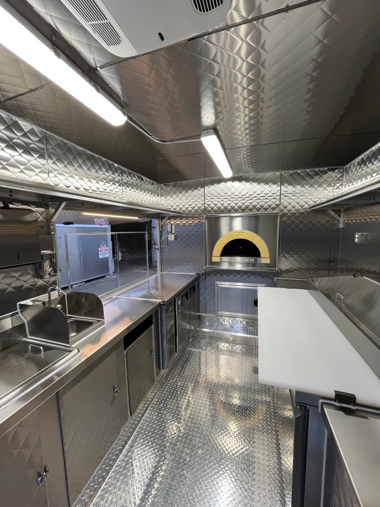 1-door refrigerator, 60″ pizza prep table, 48″ undercounter refrigerator, side-mounted generator platform, cash drawer space