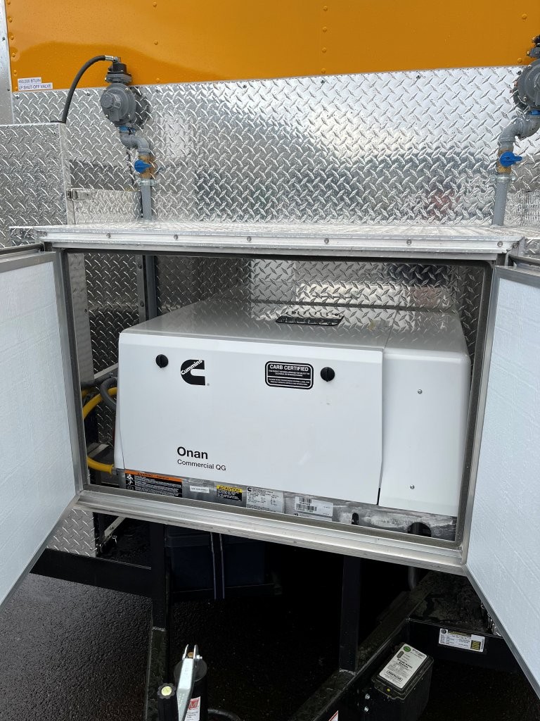 Funnel cake fryer, screen door, 6.5kW propane Cummins Onan generator
