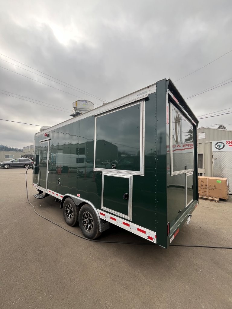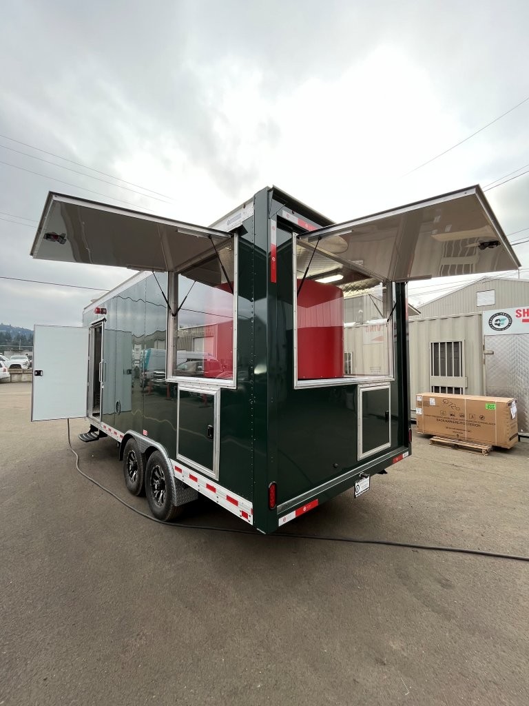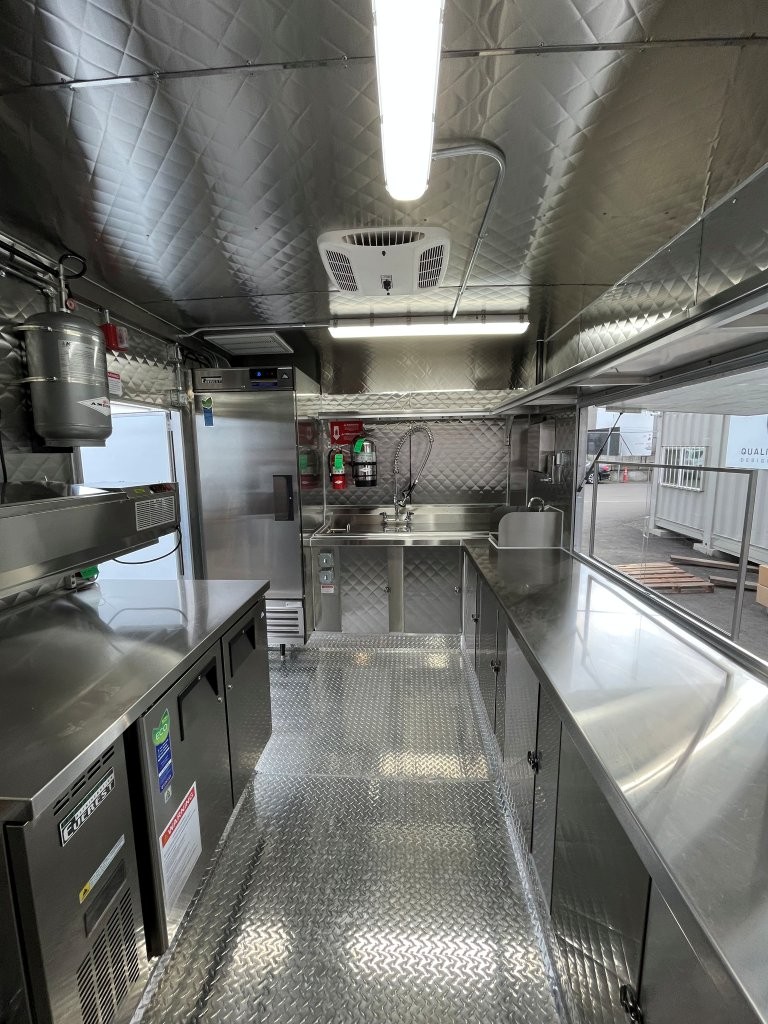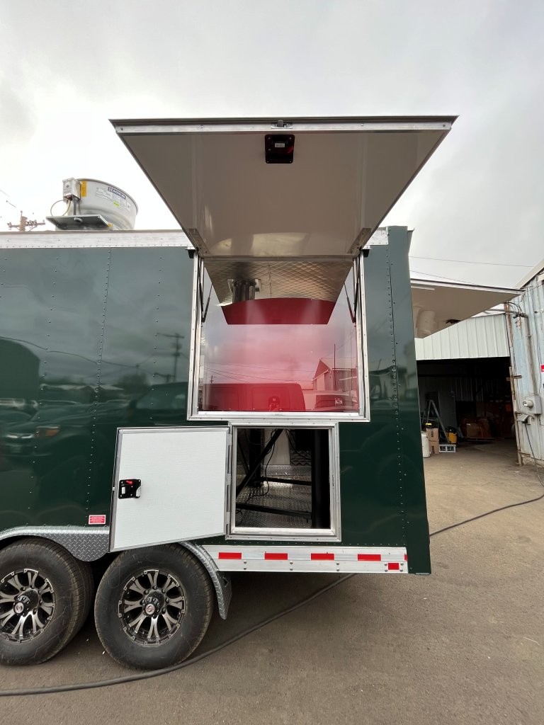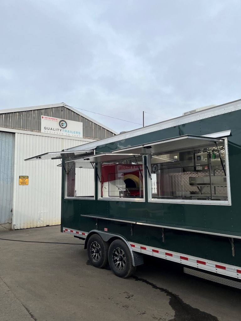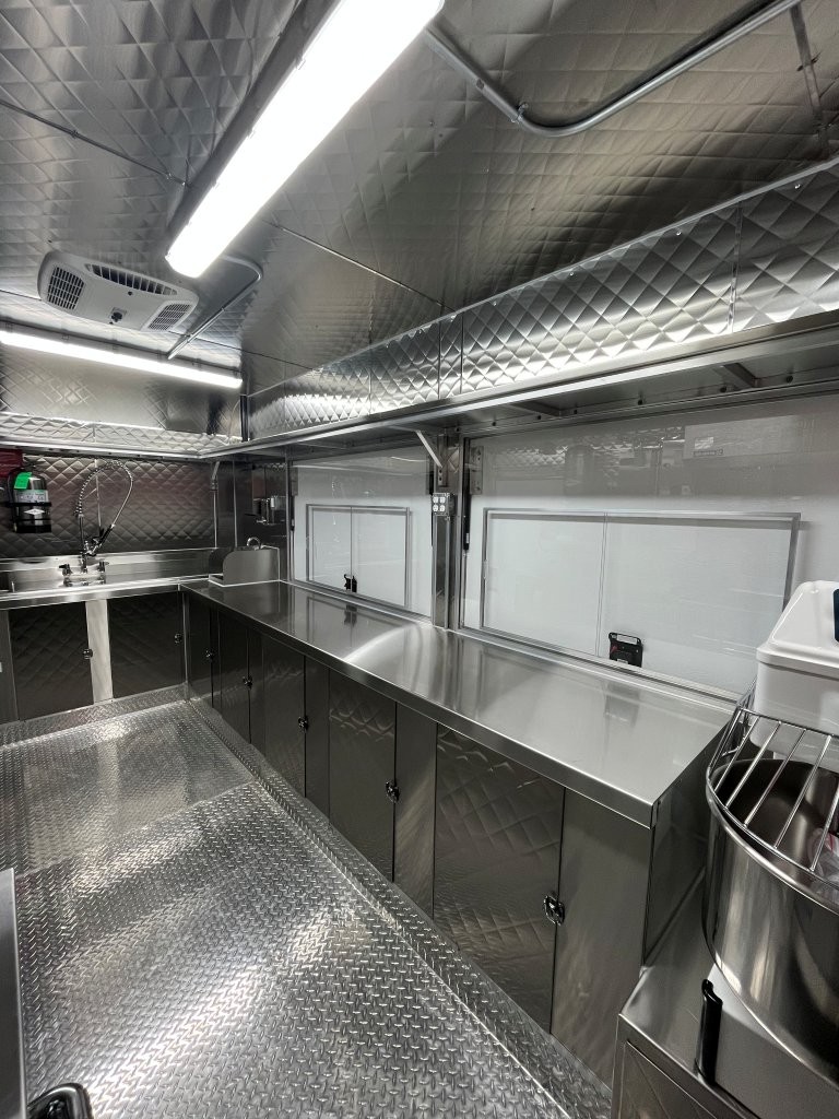 Wood and propane-fired Fiero Forni oven model 120, mixer, 6-open burner/convection oven, insulated grey fresh and grey water tanks