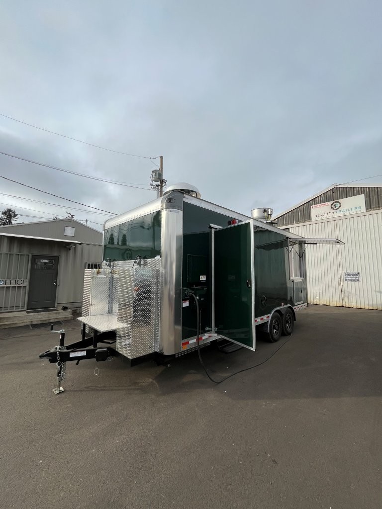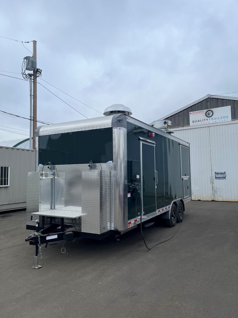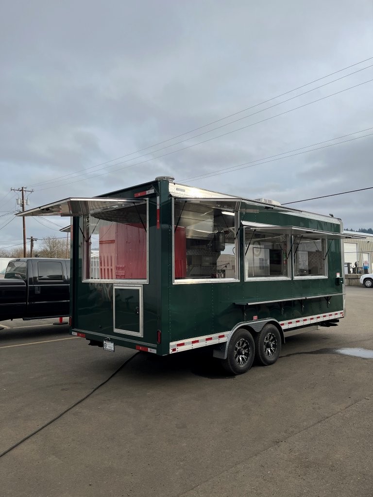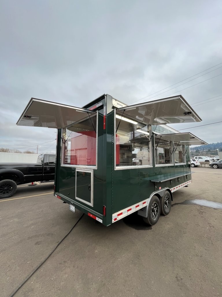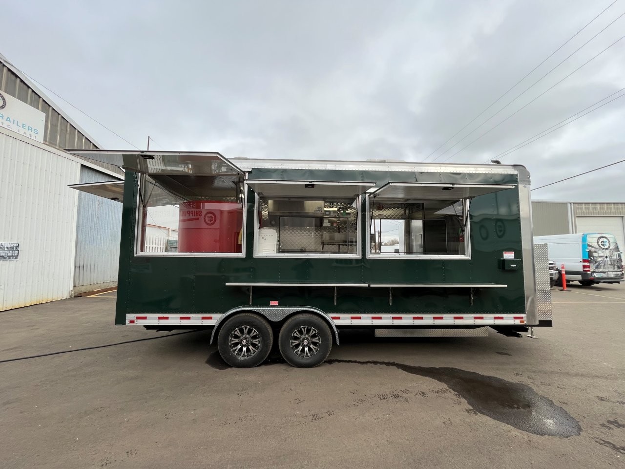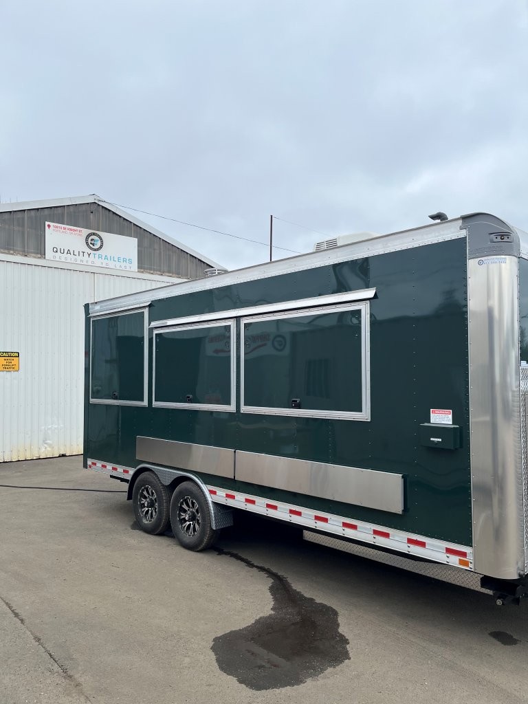 Wood and propane-fired Fiero Forni oven model 120, mixer, 6-open burner/convection oven, insulated grey fresh and grey water tanks