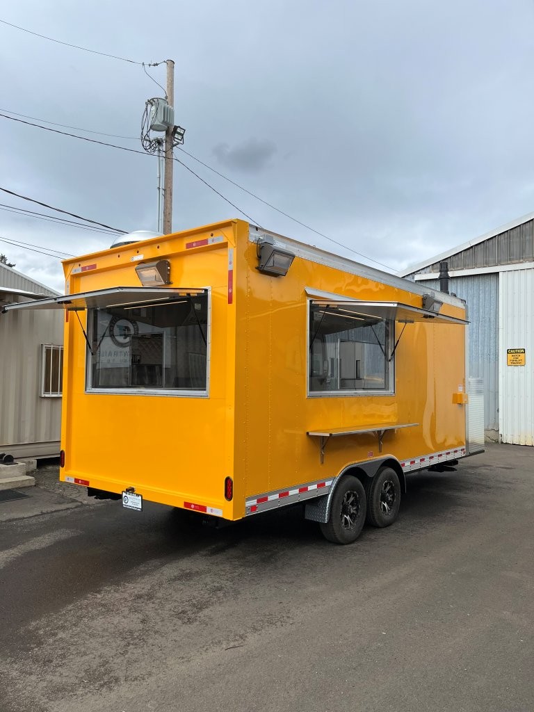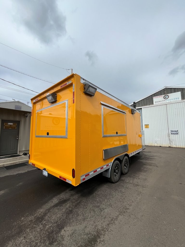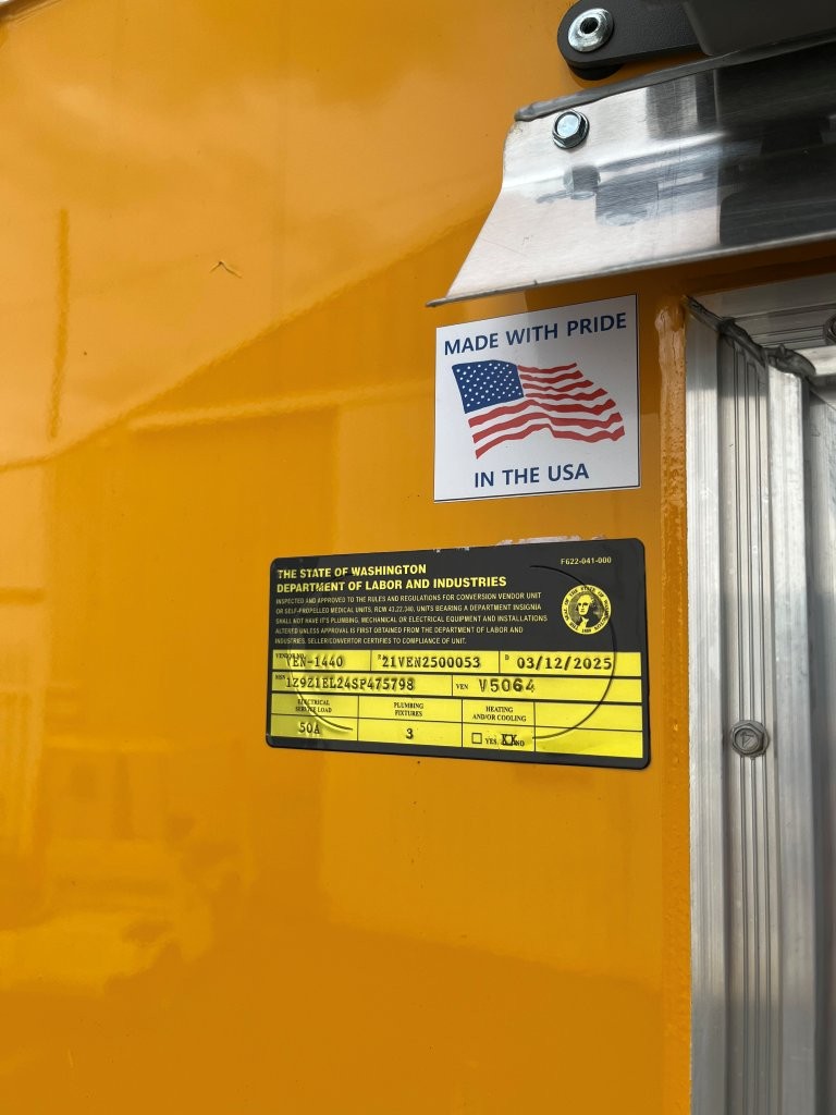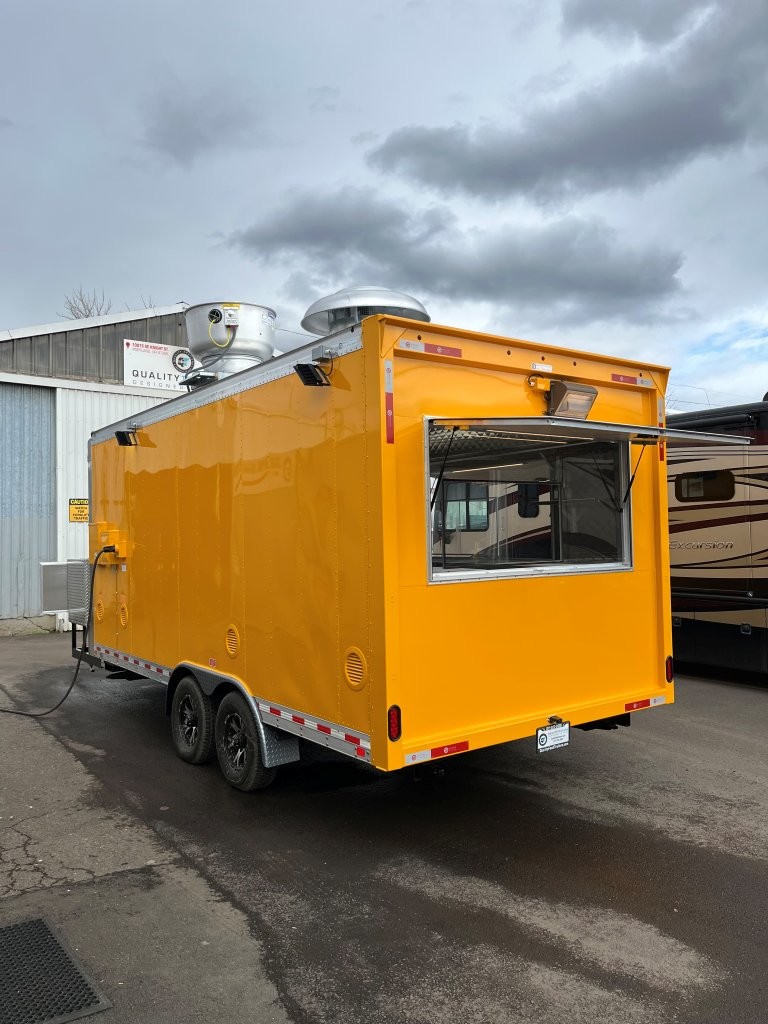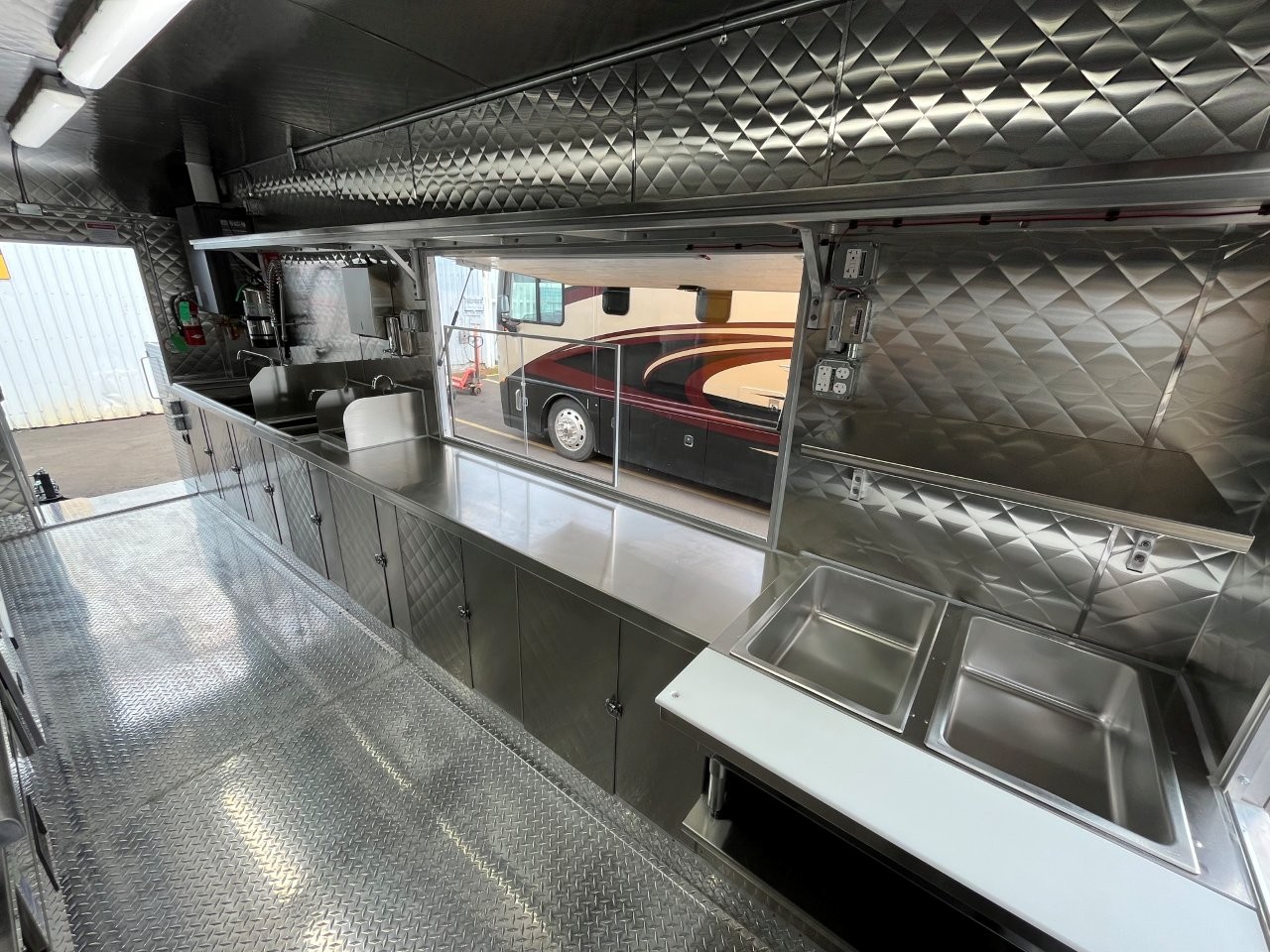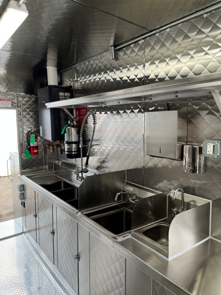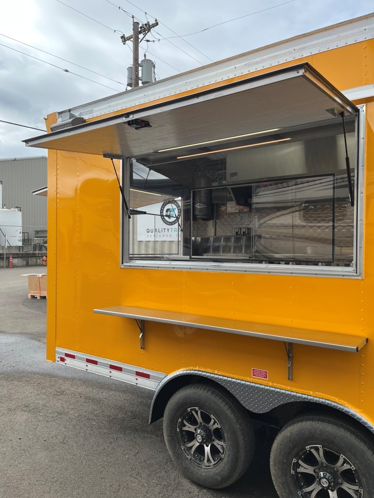 48″ griddle with a refrigerated chef base below, 10kW diesel Cummins generator, electric tongue jack, special request exterior LED lights